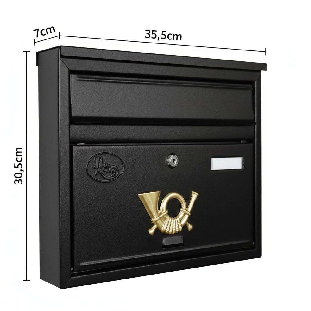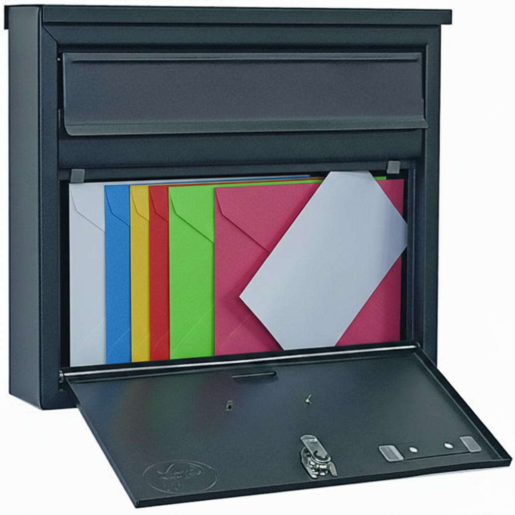 Wygodny otwór wrzutowy o wymiarach 33 × 3 cm umożliwia szybkie i łatwe umieszczanie przesyłek, a szeroko otwierane drzwi zapewniają komfortowe opróżnianie skrzynki.